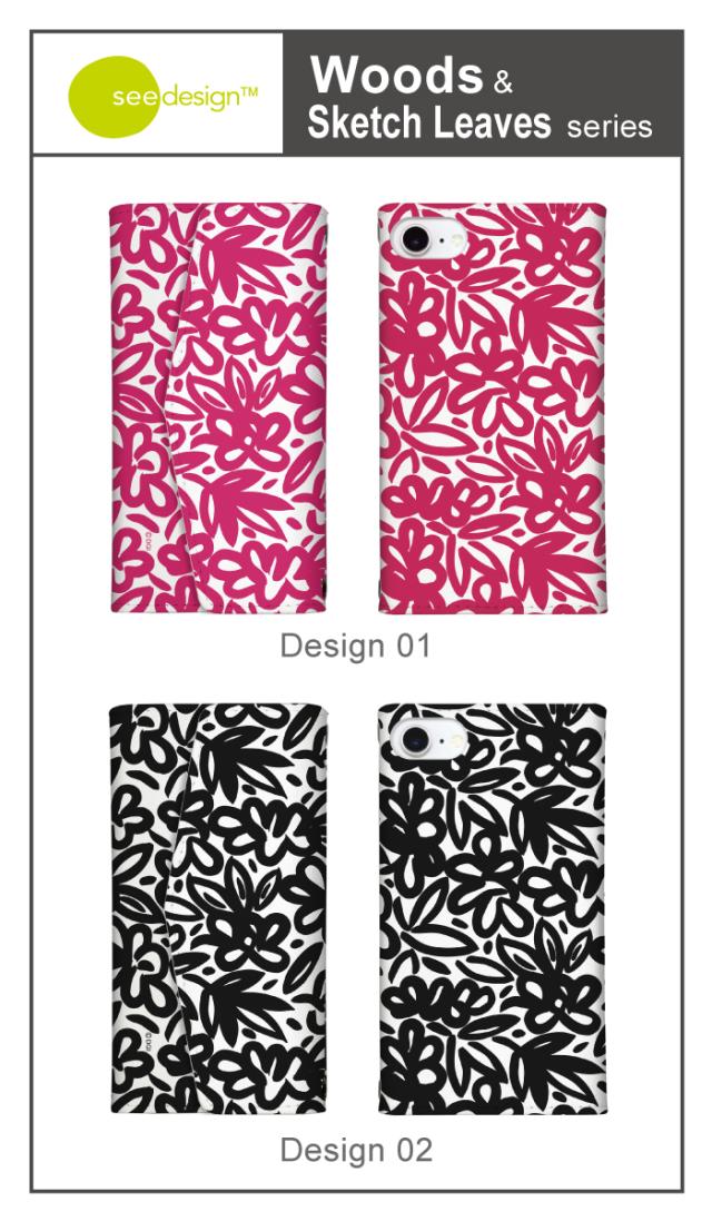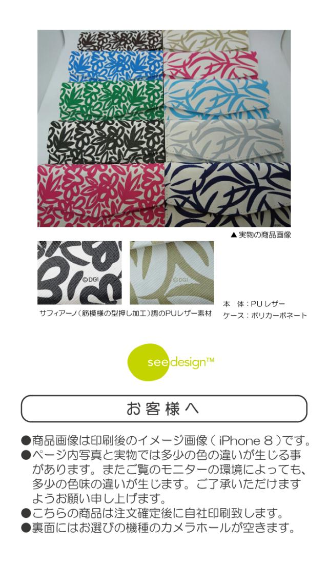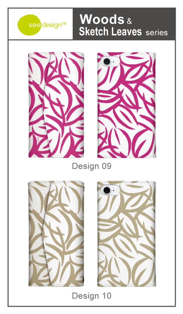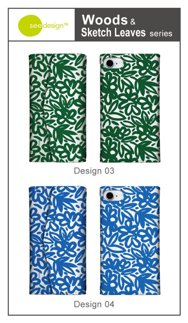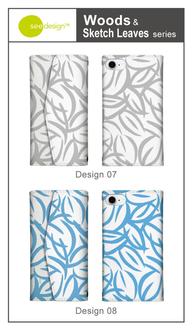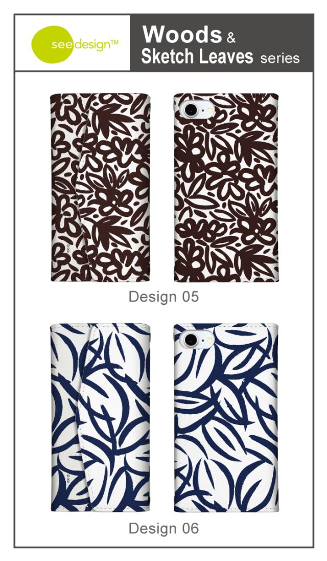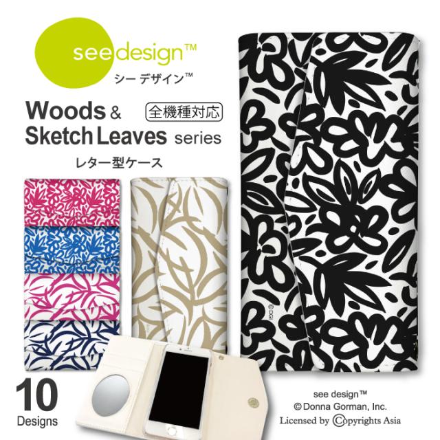 全機種対応 手帳型 ミラー付 鏡付 レター型 スマホケース see design(TM) シーデザイン Woods & Sketch Leaves 手帳型カバー 北欧テイスト