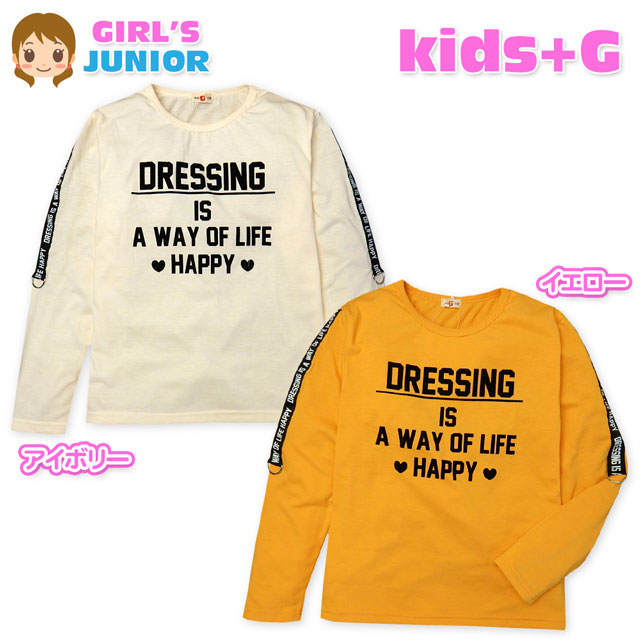 【送料無料】子供服 女の子 Tシャツ 長袖 天竺 フロッキーロゴプリント テープ装飾 女児 ジュニア 140cm 150cm 160cm【メール便対応】