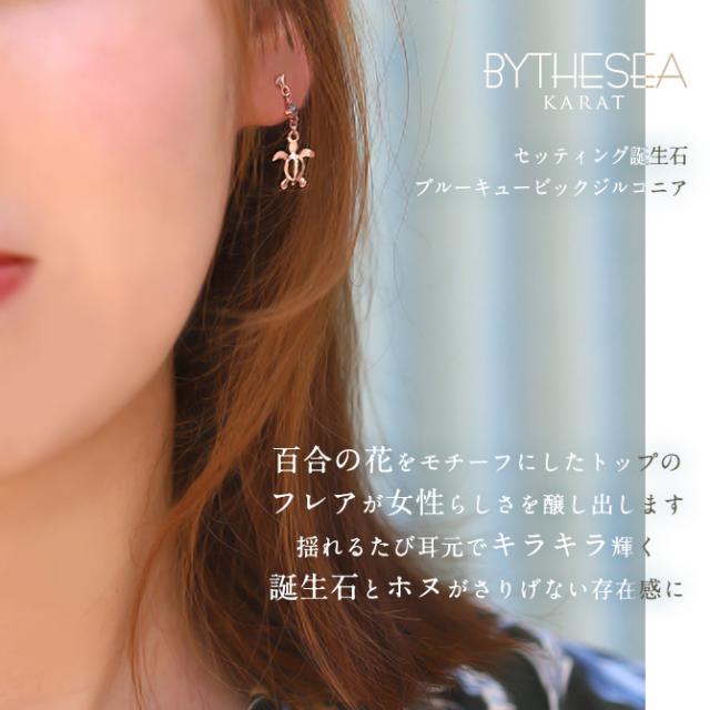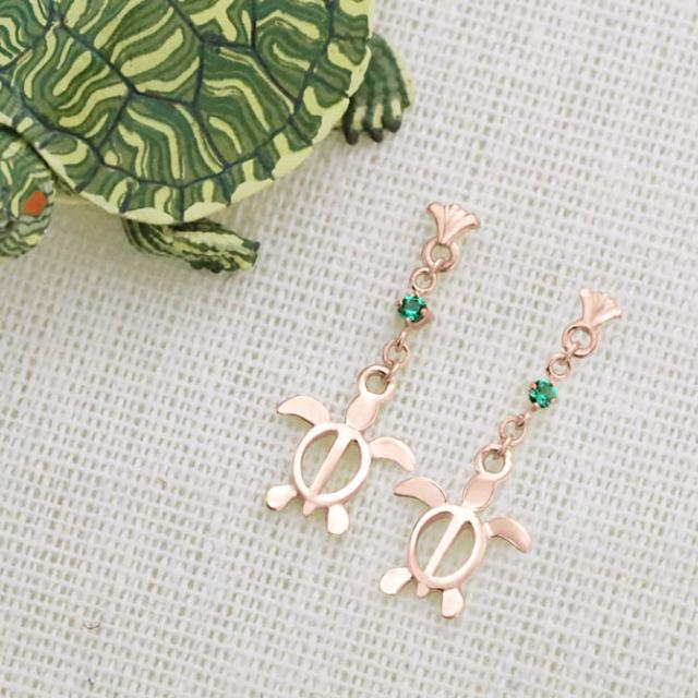 揺れるたび耳元でキラキラ輝く誕生石とホヌがさりげない存在感に