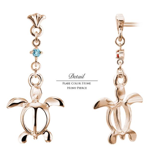 ハワイアンジュエリー ゴールド ピアス ホヌ ピンクゴールド ピアス フレア 誕生石 選べる 幸せ運ぶホヌピアス 片耳(1個)購入可 K14 14K シリコンキャッチ 20G ゲージ BY THE SEA バイザシー 彼女 妻 女性 レディース 誕生日 プレゼント ホワイトデー 【品番:GE523R】