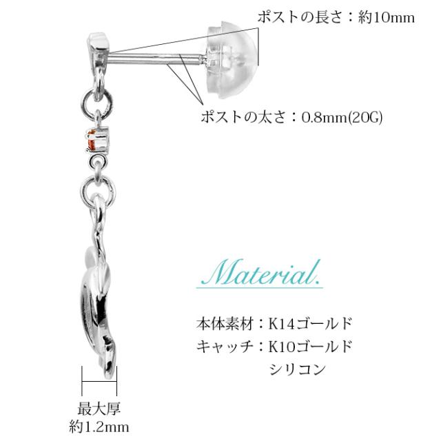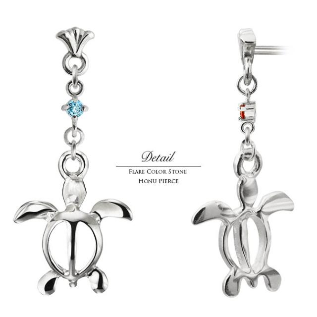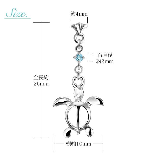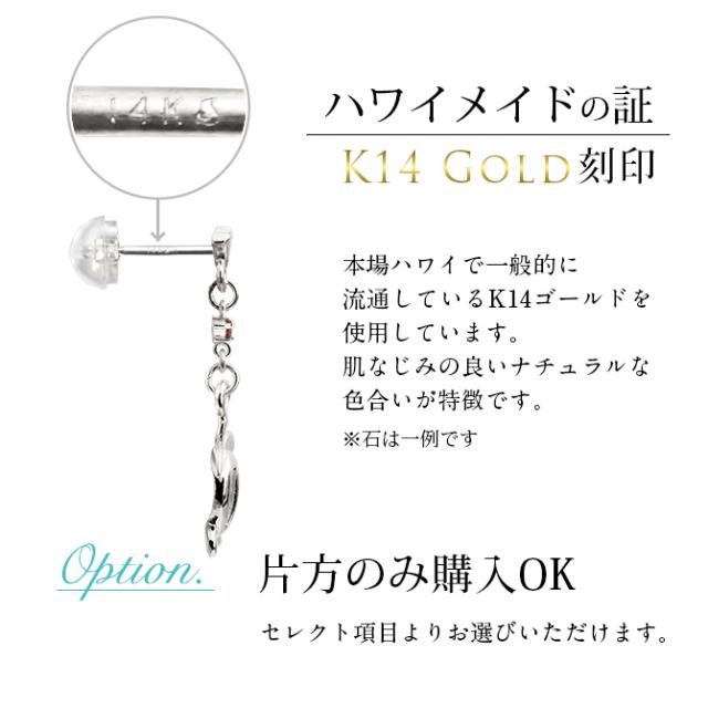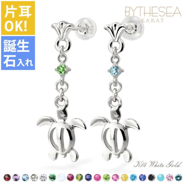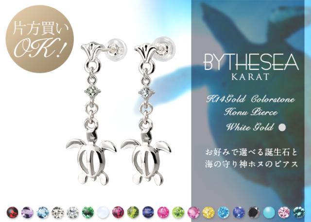 ハワイアンジュエリー ゴールド ピアス ホヌ ホワイトゴールド ピアス フレア 誕生石 選べる 幸せ運ぶホヌピアス 揺れる 片耳(1個)購入可 K14 14K シリコンキャッチ 20G ゲージ BY THE SEA バイザシー 彼女 妻 女性 レディース プレゼント ホワイトデー 【品番:GE523W】