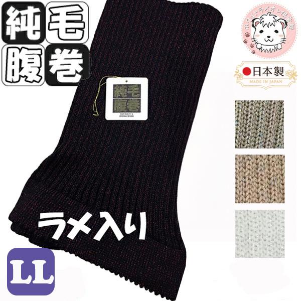 ラメ入り ウール はらまき 純毛 腹巻 手編み調 ウール100% 日本製 LLサイズ | 純毛腹巻き 温活 防寒 保温 暖かい メンズ レディース 二重タイプ ピコ付き