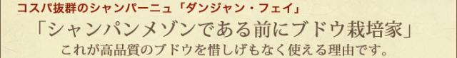 対となるカルト・ブランシュは100%シャルドネで造られるブラン・ド・ブラン。さわやかでフレッシュな味わい、ピュアな果実味の醸す驚くべきエレガンスを感じることができる。ダンジャン家では輸出割合は15%ほどだ。「泡の魔法」を存分に感じられる。
