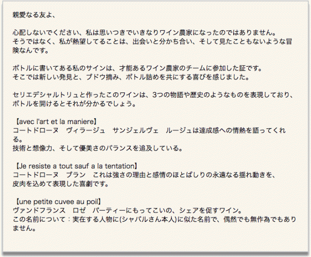 ワイン名(原語):ジュ・レジストゥ・ア・トゥ ソフ・ア・ラ・タンタシオン(JE RESISTE A TOUT SAUF A LA TENTATION)