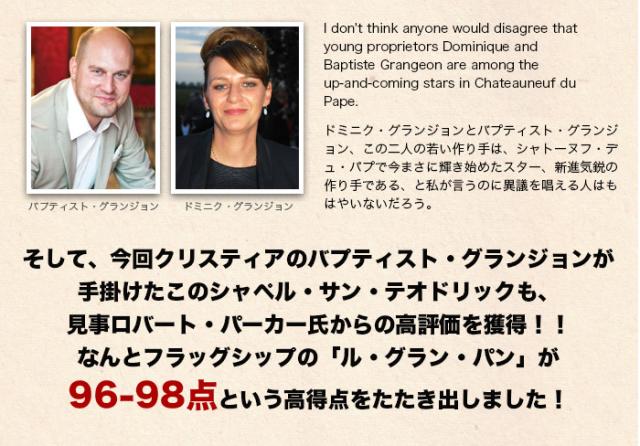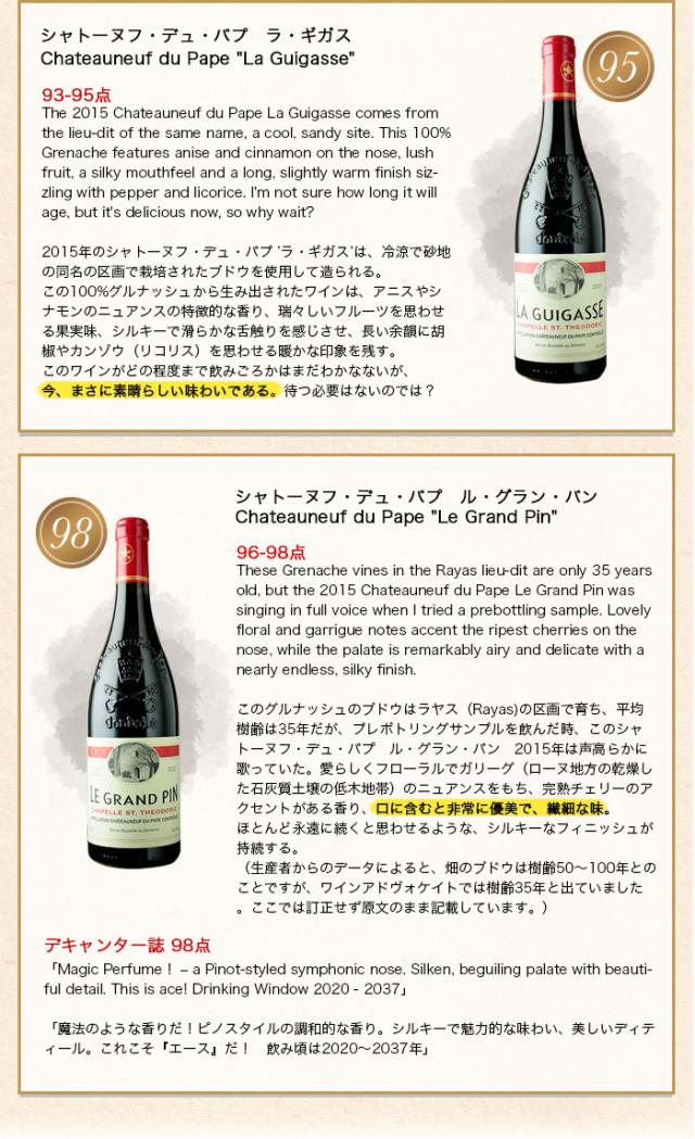 ![]() シャトーヌフ・デュ・パプ・ラ・ギガス | ![]() シャトーヌフ・デュ・パプ ル・グラン・パン | |||