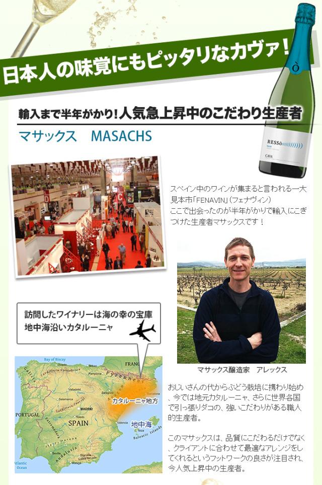| Resso Brut Nature Organic ![]() ![]() ![]() ヨーロッパはじめ世界中でオーガニック製品の人気は急上昇。スペインはもちろん、マサックスの主要輸出先であるヨーロッパ諸国でも、原料ブドウの出自にこだわる消費者が増えているそうです。 ![]() ![]() ![]()