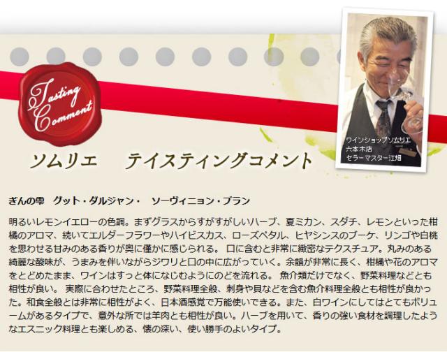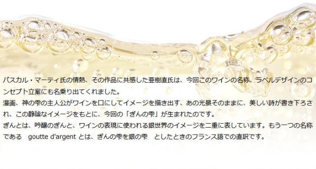ワイン名(原語):ぎんの雫 グット・ダルジャン・ ソーヴィニョン・ブラン