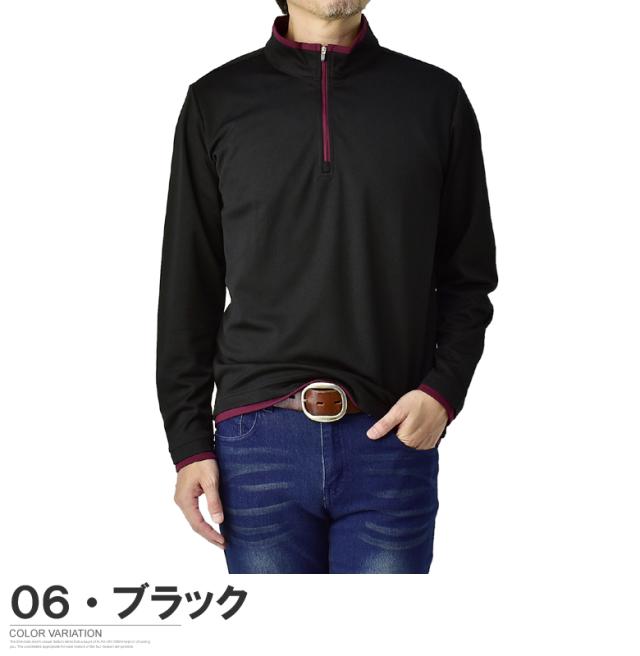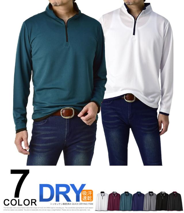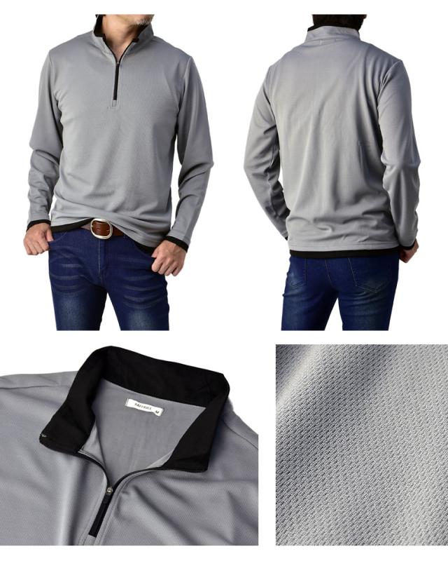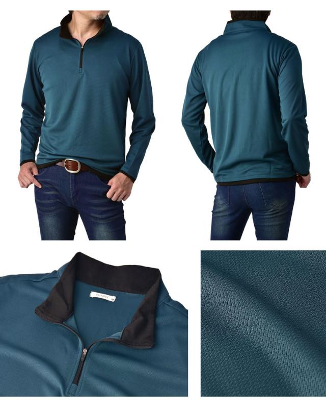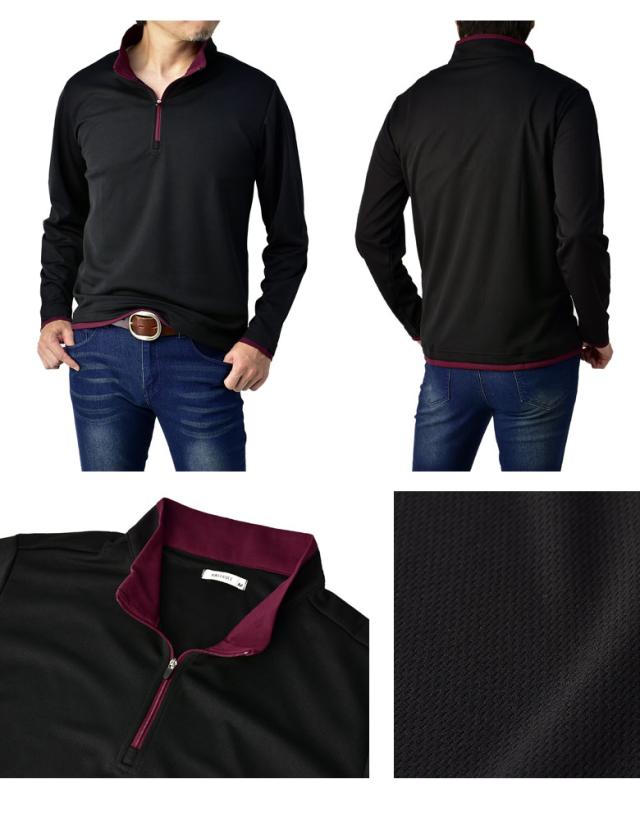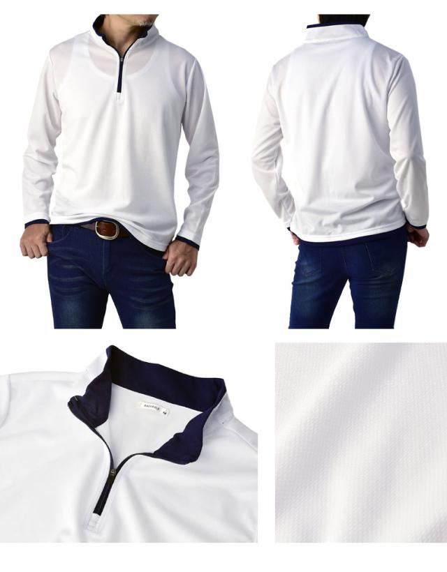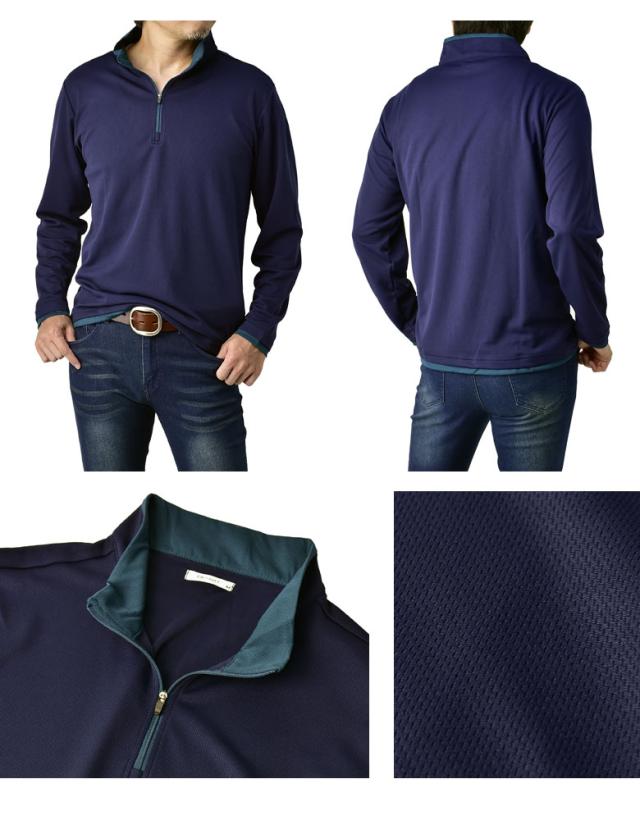 吸汗速乾 長袖 ポロシャツ ハーフジップ カットソー メンズ ドライ ストレッチ ゴルフウェア UV ゆったり トップス【A5L】【パケ1】