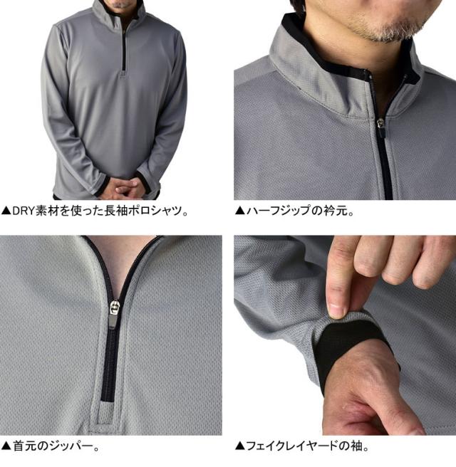 吸汗速乾ドライ生地を使用して作られた、長袖ポロシャツです。