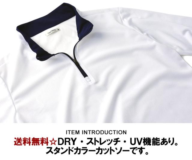 ゆうパケット送料無料☆DRY、ストレッチ、UV機能あり。スタンドカラーカットソーです。