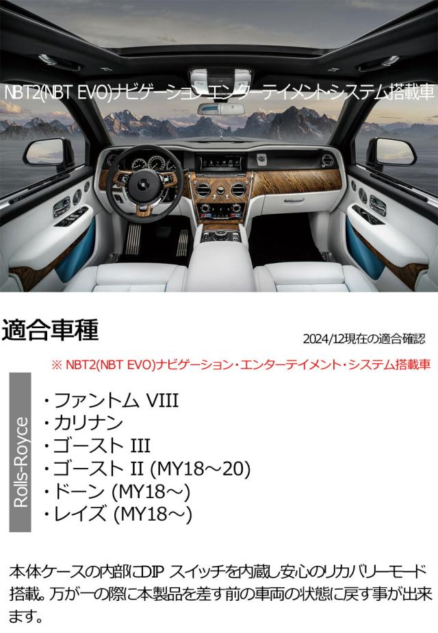 ロールスロイス カリナン レイス ゴースト ドーン ファントム TVキャンセラー 走行中テレビが見れる NBT2 (NBT EVO)ナビゲーションシステム搭載車 プラス PLUG TV+for CTC PL3-TV-R002