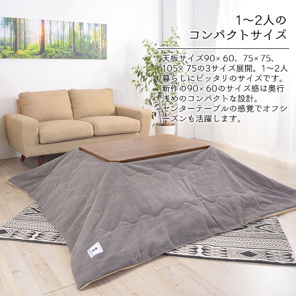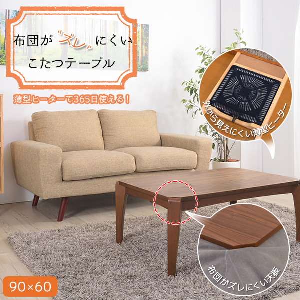 布団がズレにくい こたつテーブル 長方形 90×60 送料無料 薄型ヒーター おしゃれ 本体 単品 一人用こたつ 小さいこたつ