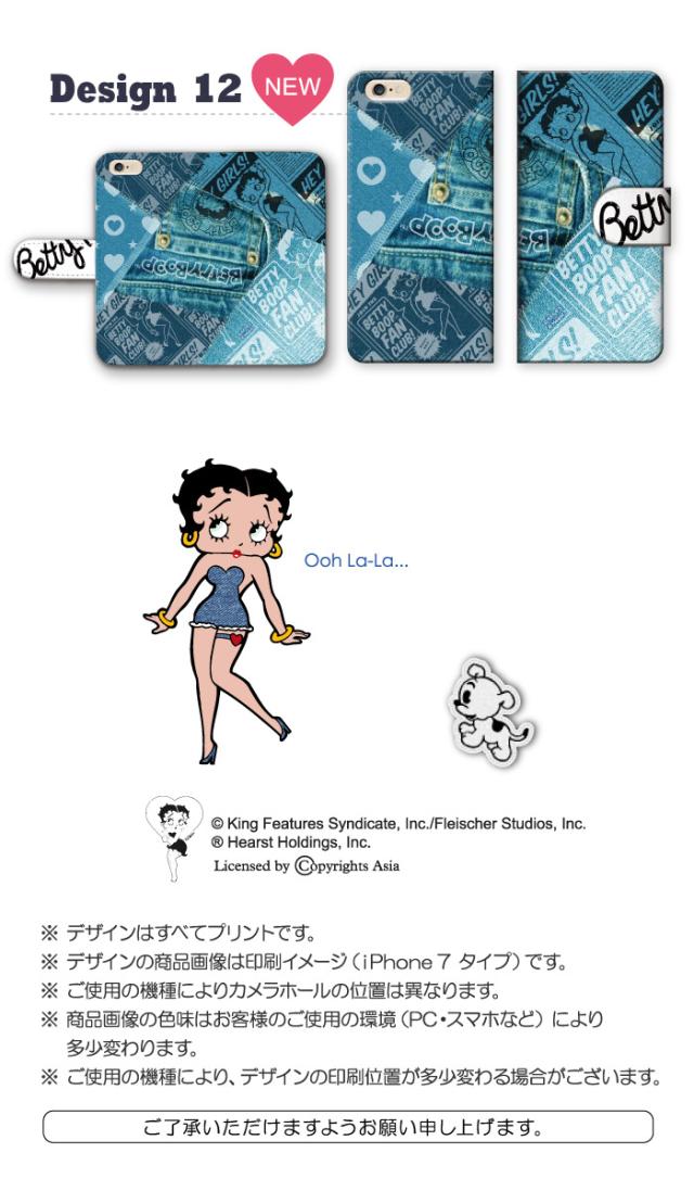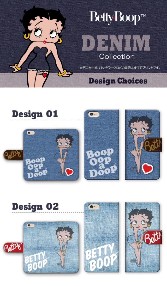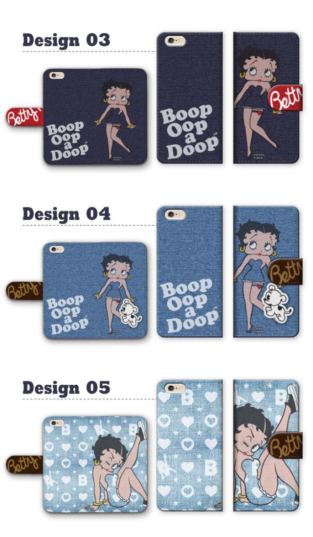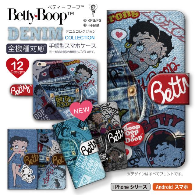 全機種対応 スマホケース キャラクター ベティー ブープ(TM) 手帳型 デニム スマホカバー ベティーちゃん 正規品 Betty Boop(TM) 送料無料 ネイビー