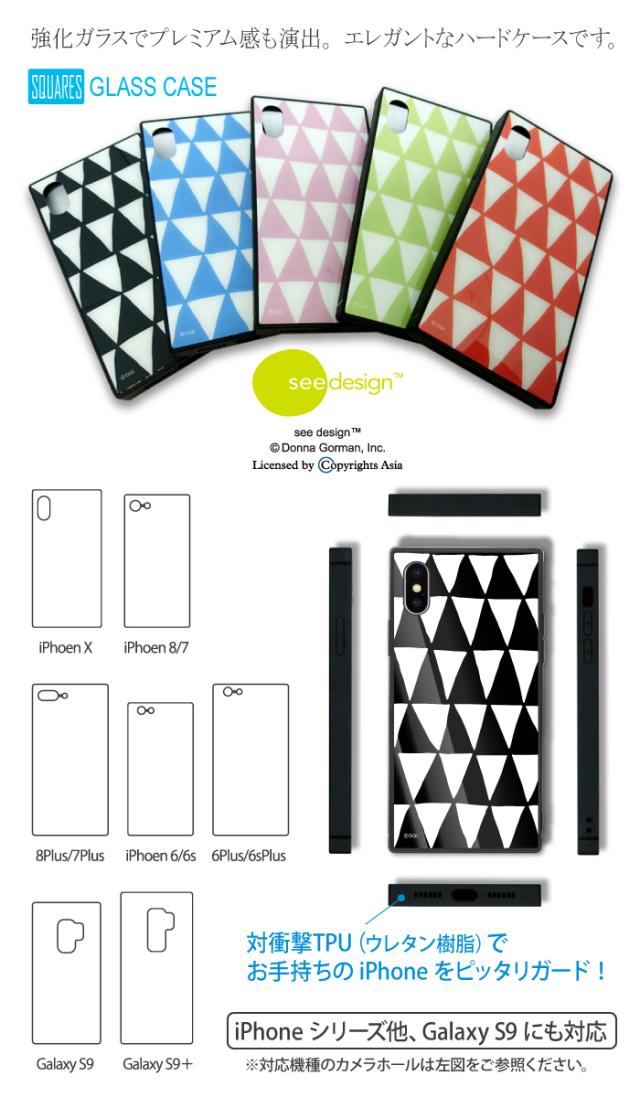 see design(TM) スクエアガラスケース iPhone13対応 シーデザイン 正規品 四角 スクエア型 強化ガラス ブラック ブルー ピンク オレンジ グリーン 北欧テイスト