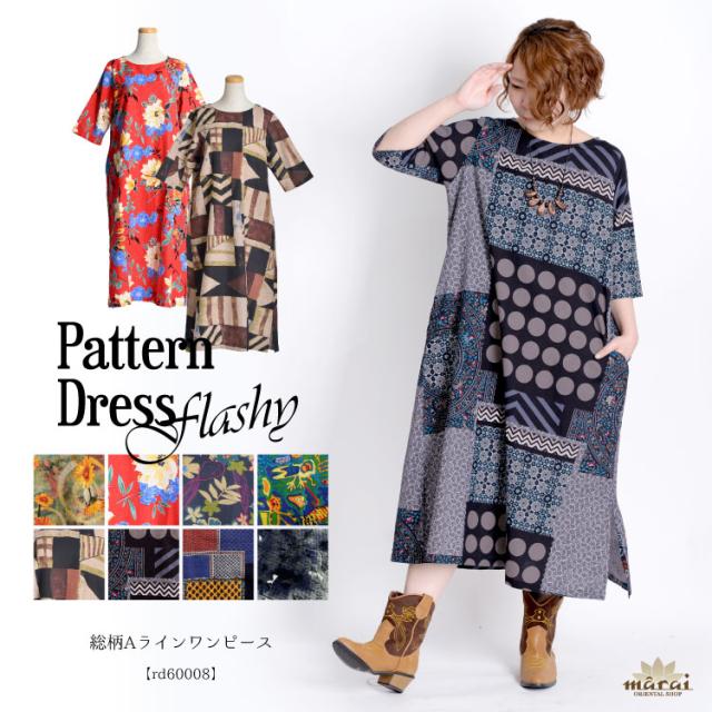 ワンピース レディース ロングワンピース きれいめ 柄 半袖 大きいサイズ Aライン マキシ ロング エスニック アジアン ファッション rd60008