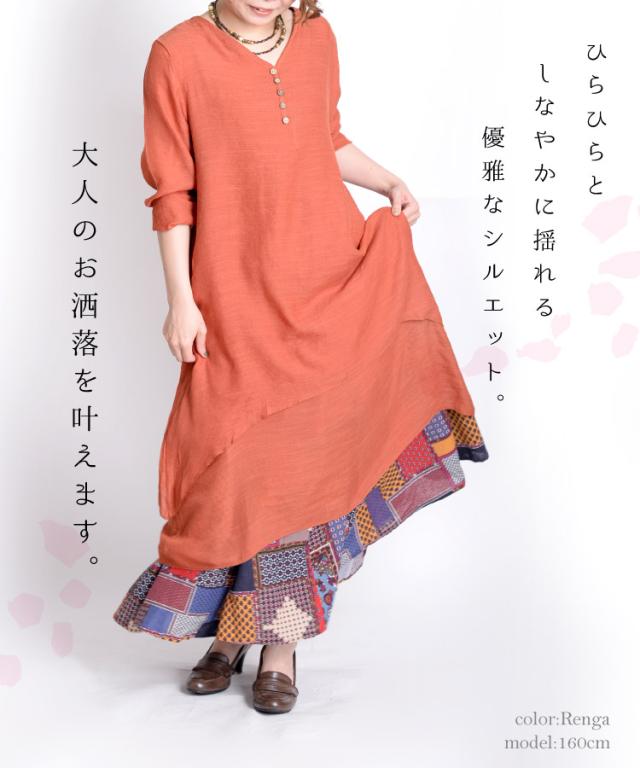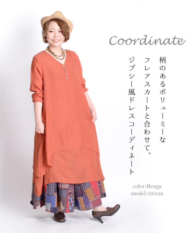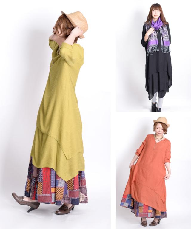 【 レーヨン レイヤード 個性的 大きいサイズ レディース シンメトリー トロミ とろみ レイヤード風 重ね着風 ラップ風 マタニティ 黒 ブラック 茶色 ブラウン 青 ブルー エスニック アジアン ボヘミアン 薄手 ボヘミアン 民俗 民族 】