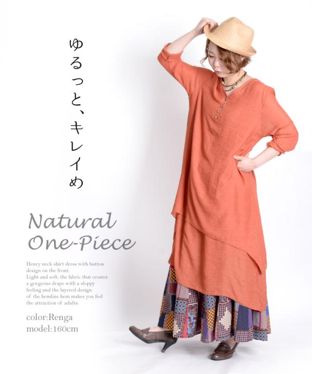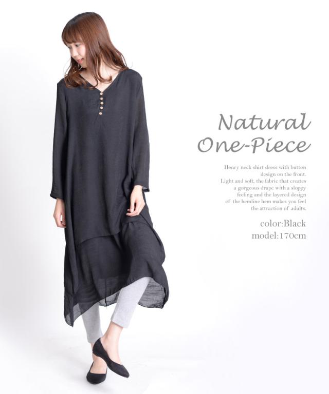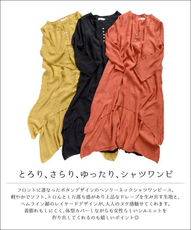 フロントに連なったボタンデザインのヘンリーネックシャツワンピース。