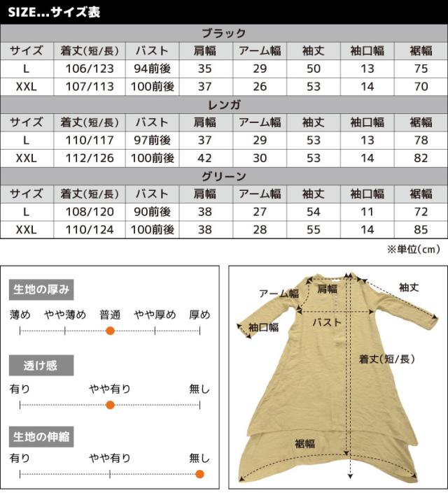 | 素材 | コットンリネンポリエステル混紡素材(サラサラとした肌触りの楊柳生地) グリーン XXLサイズ:ポリエステル100% |