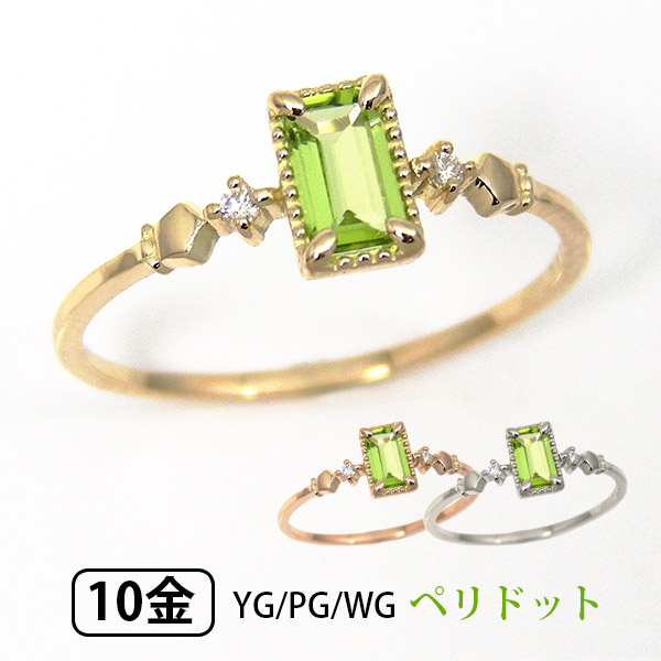 ペリドット リング ダイヤモンド バゲットカット K10YG/PG/WG 10k 10金