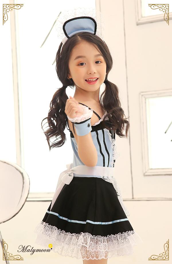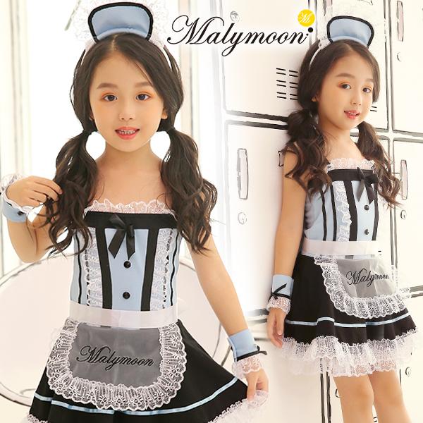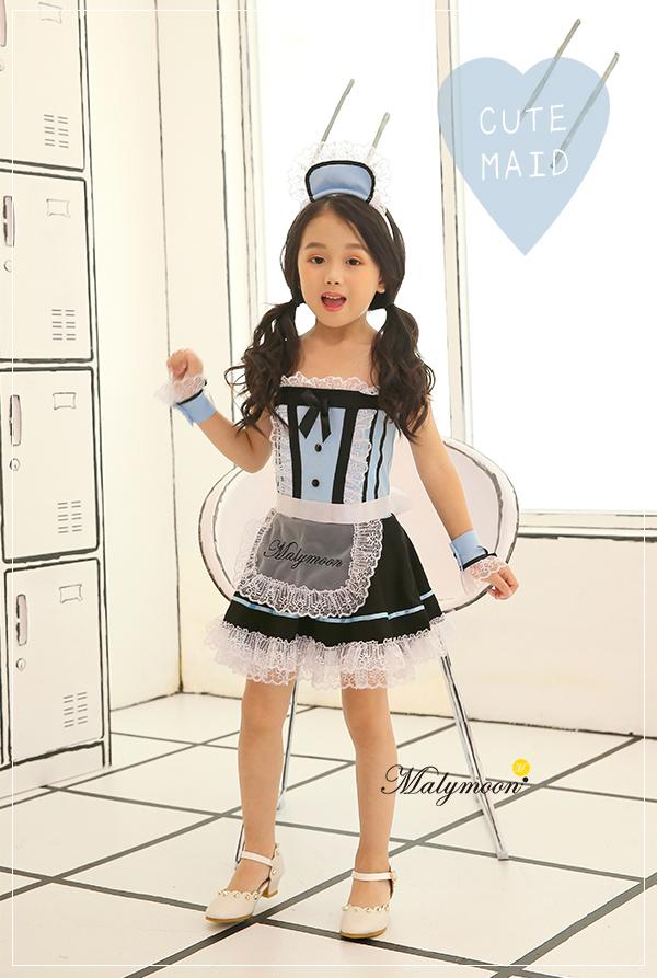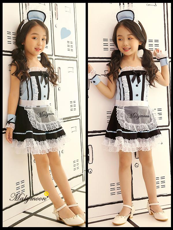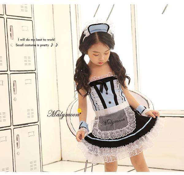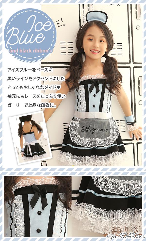 ハロウィン 衣装 子供 キッズ メイド ウェイトレス アリス風 仮装 ダンス コスチューム 可愛い エプロン マリームーン
