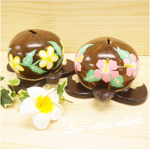 ホヌの貯金箱 ハイビスカス プルメリア カメ ハワイアン 貯金箱 インテリア 雑貨 送料無料