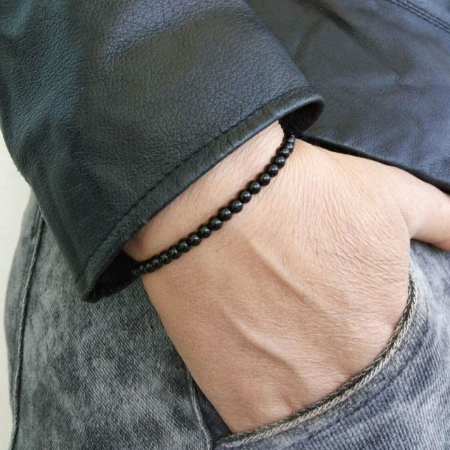 天然石風のオニキスのようなビーズをセットしたスリムなブレスレット。