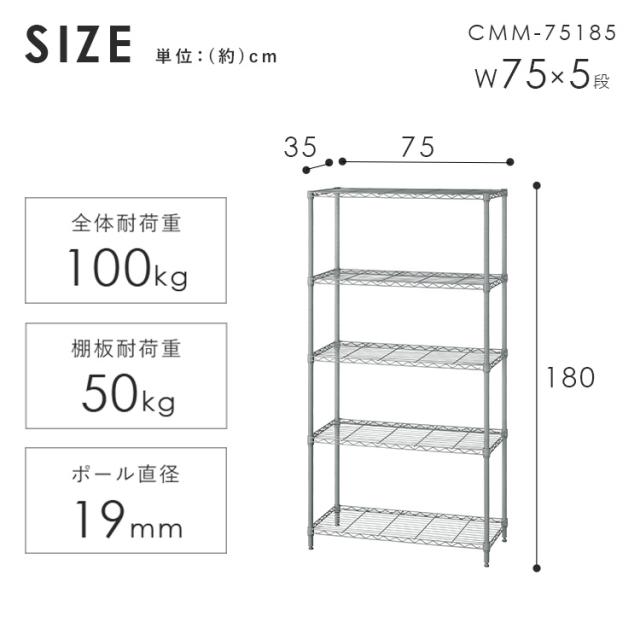 スチールラック 5段 CMM-75185 一人暮らし 新生活 ラック カラーラック 幅約75×奥行約35×高さ約180 メタルラック ハイタイプ ホワイト ブラック ブラウン ピンク コンパクト収納 整理整頓 オープン アイリスオーヤマ 【int】