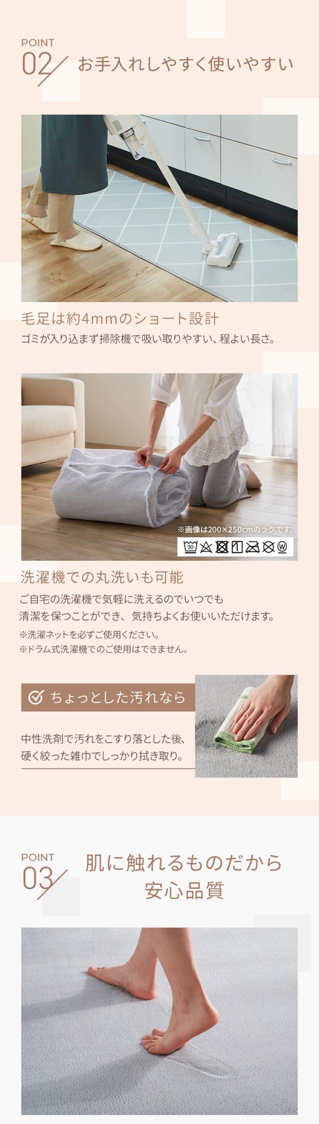 肌触りの良いフランネル地のさらふわ洗えるキッチンマット。