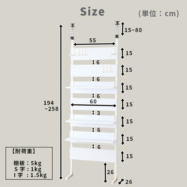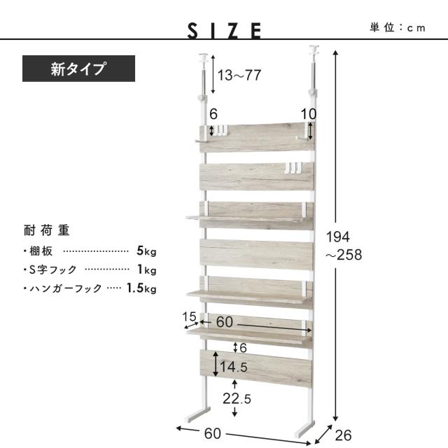 本体:約幅60×奥行25.5×高さ194〜258(cm)