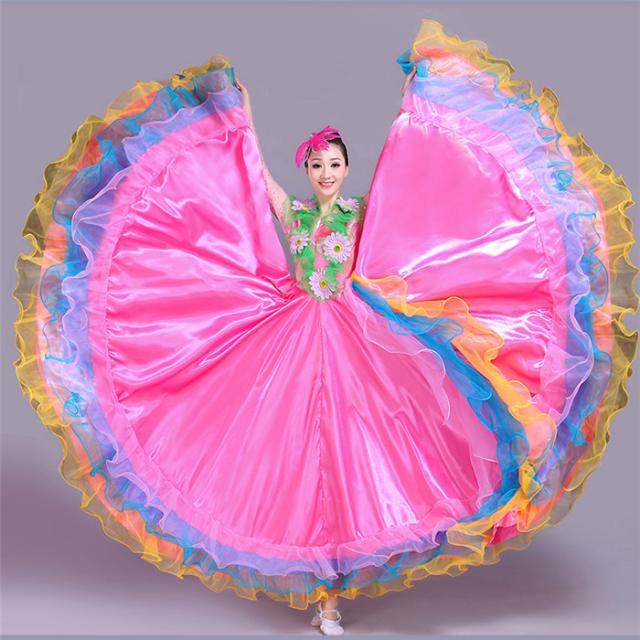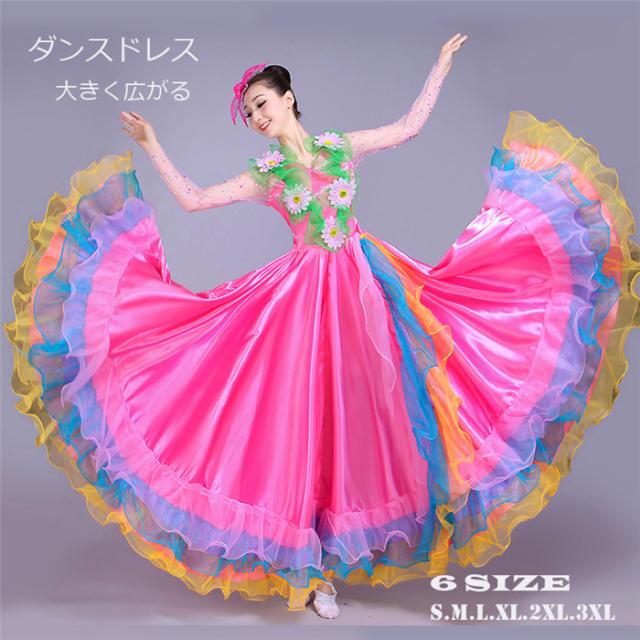 ワルツ タンゴ服 ラテンダンス 大きく広がる ドレス ステージ衣装 カラードレス スパンコール モダンダンス ワンピース ダンスドレス 演出服