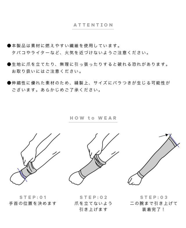 | 注意事項 | ●お肌に合わない場合や、湿疹・傷・かぶれ等のある場合、かゆみ等がでた場合はご使用にならないでください。 ●本製品は素材に燃えやすい繊維を使用しています。タバコやライターなど、火気に近づけないようご注意ください。 ●生地部分に爪を立て、無理に引っ張ると破れる恐れがあります。着脱の際はご注意ください。 ●伸縮性に優れた素材の為、縫製上、サイズにバラつきが生じる可能性がございます。予めご了承ください。 |