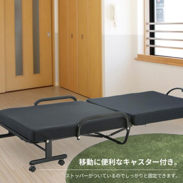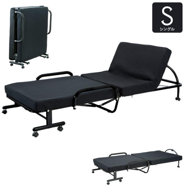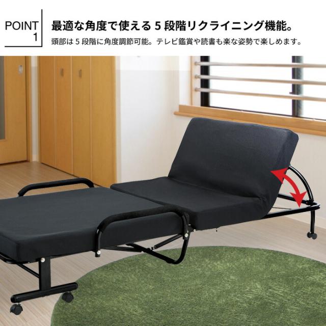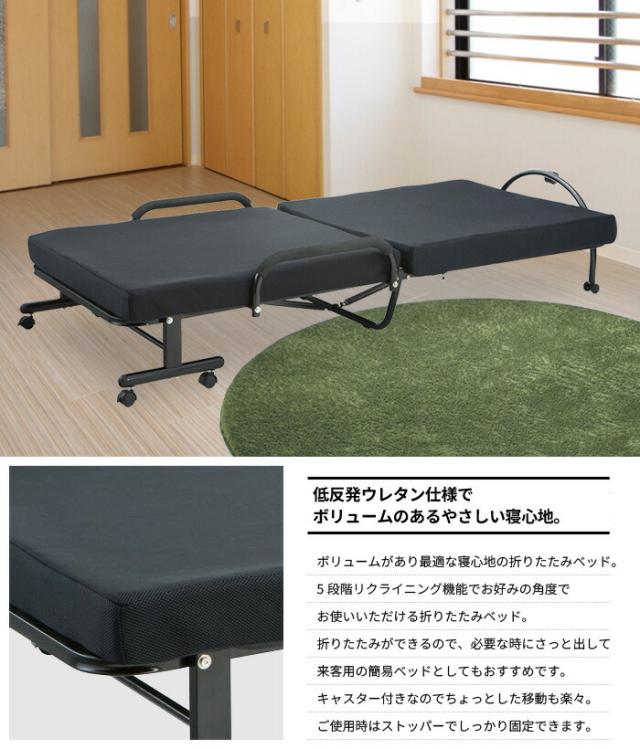 リクライニング ベッド 5段階 折りたたみベッド ブラック 低反発ウレタン 省スペース コンパクト ストッパー付き キャスター 来客
