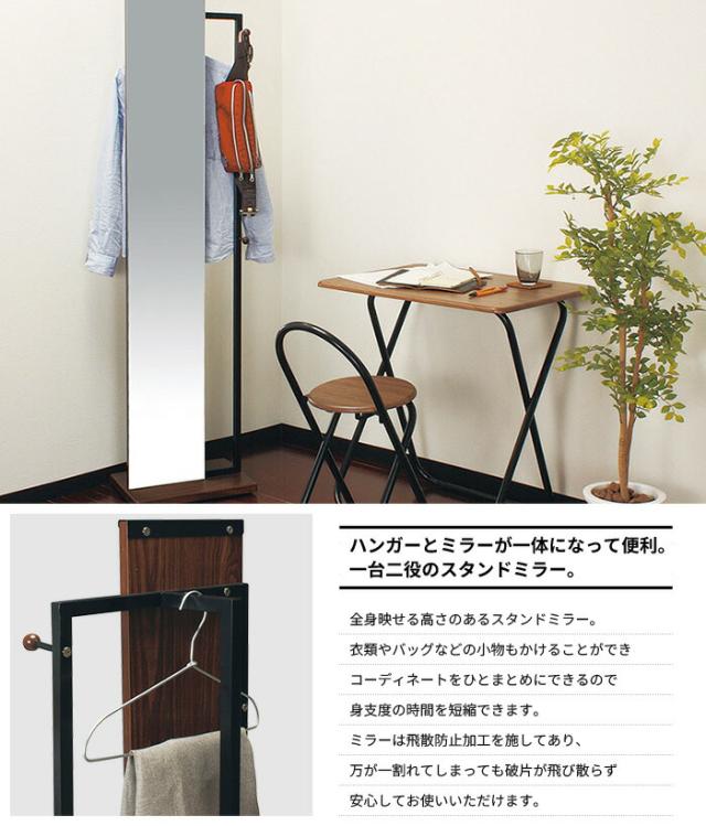 【値下げ】ハンガーラック ミラー付き 一体型 ハンガー付ミラー スタンドミラー ハンガー フック キャスター付き 姿見 鏡 全身 ミラー 飛散防止