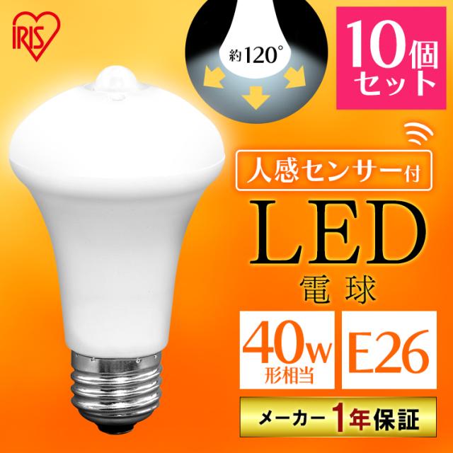 【10個セット】電球 LED電球 アイリスオーヤマ E26 40W 人感センサー付 LDR6N-H-SE25 LDR6L-H-SE25 LED 電気 LED天井照明器具 人感センサー電球 昼白色 電球色 トイレ 玄関 廊下 クローゼット 省エネ 一人暮らし