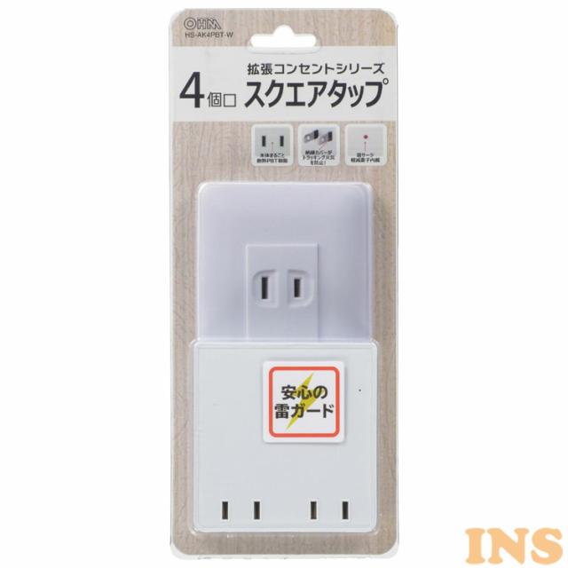 4口 スクエアタップ雷ガード HS-AK4PBT-W オーム電機