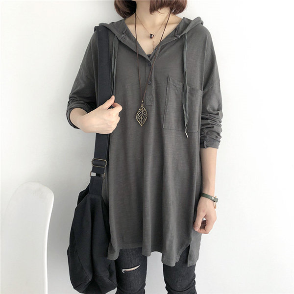 送料無料 パーカー レディース 長袖tシャツ フード付き ロンT カットソー プルオーバー ロングtシャツ ロンティー スエット ロングパーカー ゆったり 春夏秋冬
