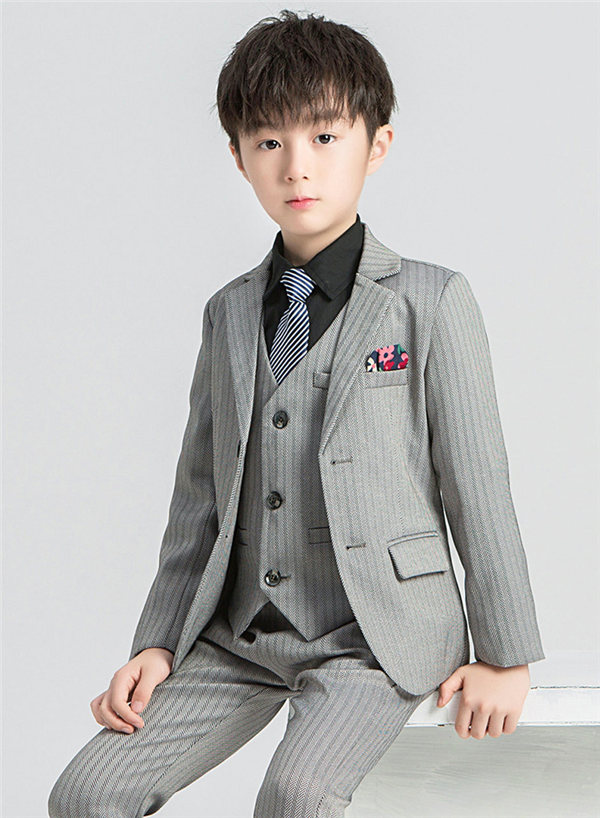 フォーマルスーツ 男の子 スーツ キッズ 子供 4点セット ベスト 上下セット セットアップ タキシード ストライプ ジュニア 入学式 卒業式 七五三 結婚式 発表会