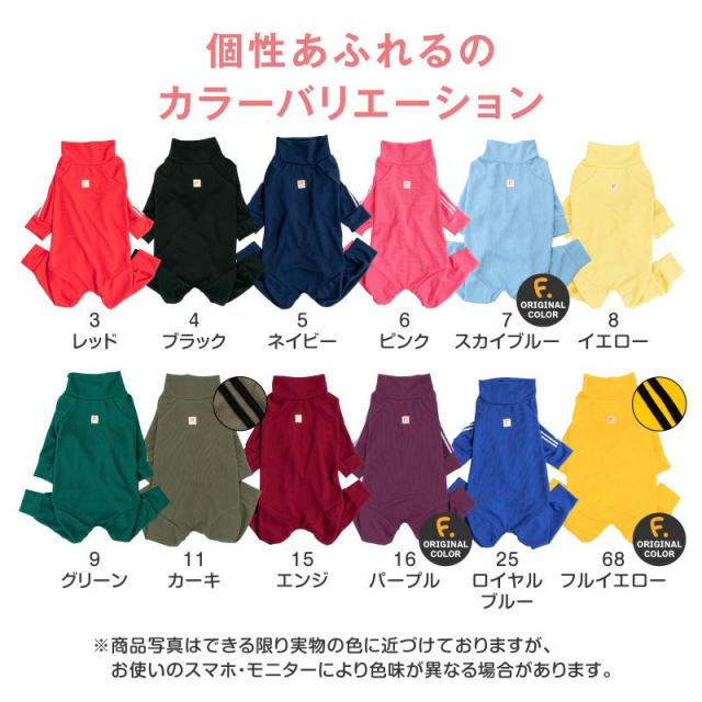 長年愛される体操服ジャージは、お散歩時の汚れ対策・お部屋着の他に、皮膚保護やケアウエアとしてもご愛用いただいています。