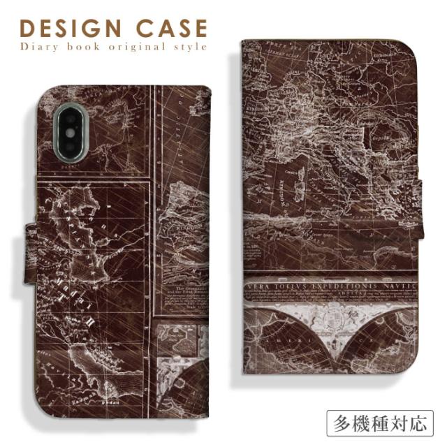 全機種対応 スマホケース 手帳型 AQUOS zero5G SHG02 ケース アクオス センス3 SHV45 ケース カバー シャオミ ヴィンテージ マップ 地図 アンティーク オールド レザー オシャレ