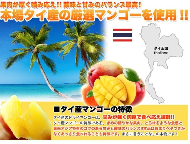 タイ産マンゴーの特徴、タイ産のドライマンゴーは、甘みが強くて肉厚で食べ応え抜群