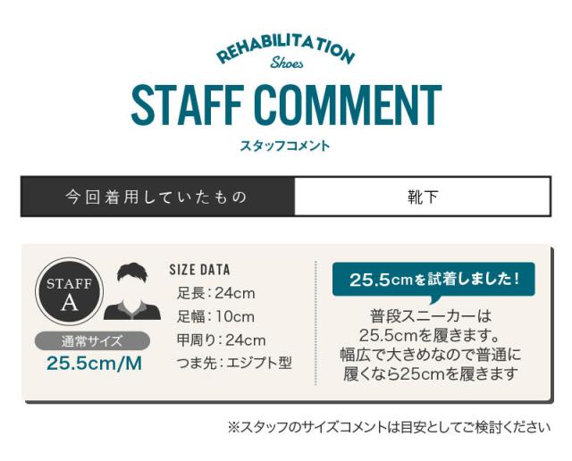 スタッフサイズ25.5cm(甲=中 ワイズ=3E程度)のコメント