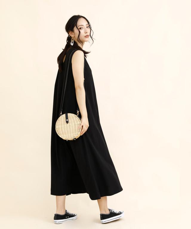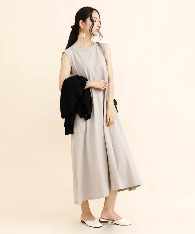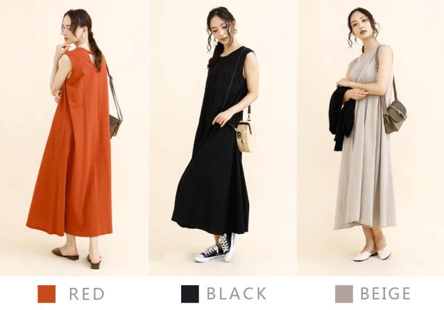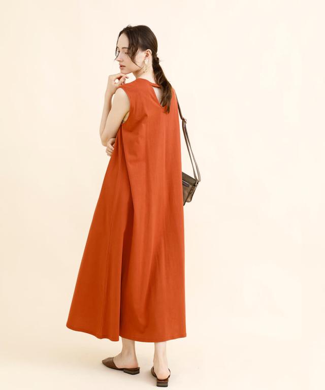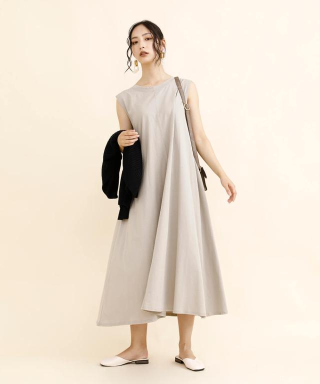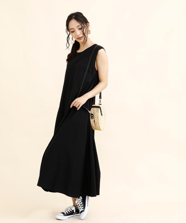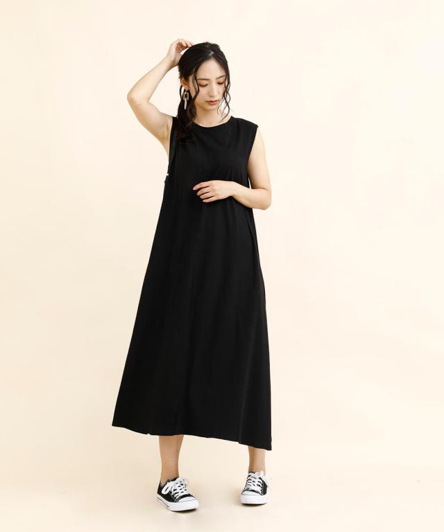 ノースリAラインロングワンピース Aライン 肌魅せ 背中空き コットンワンピ レディース ルーズ カジュアル