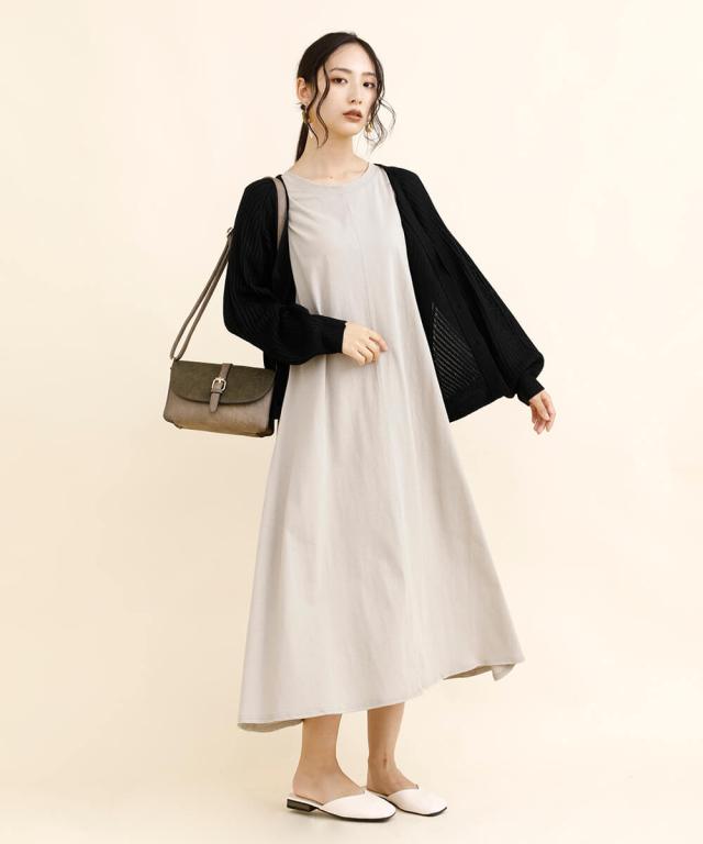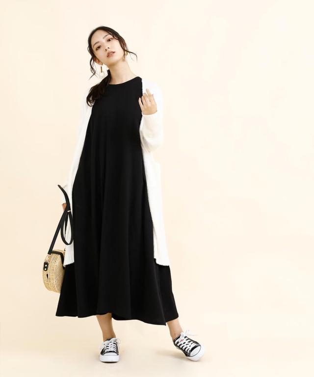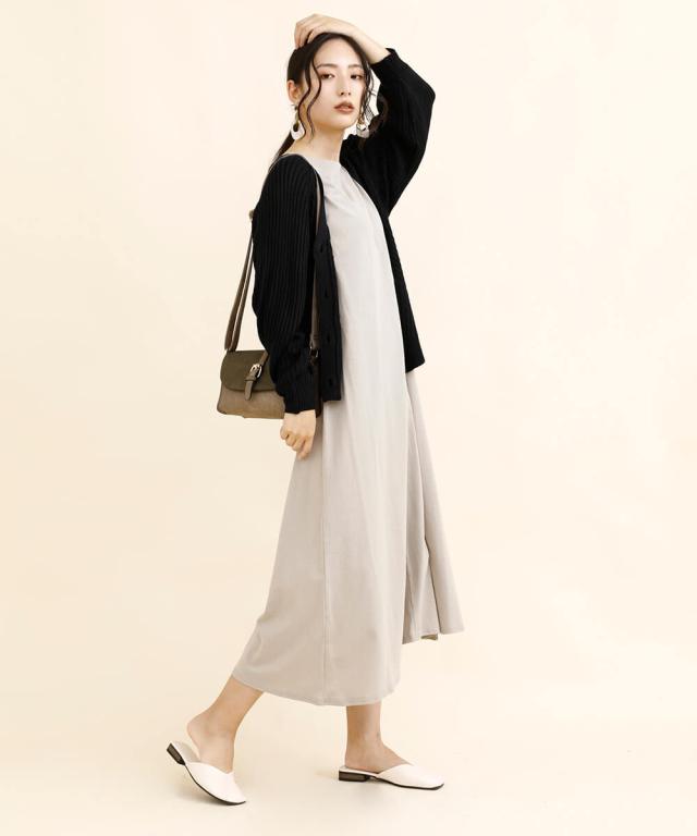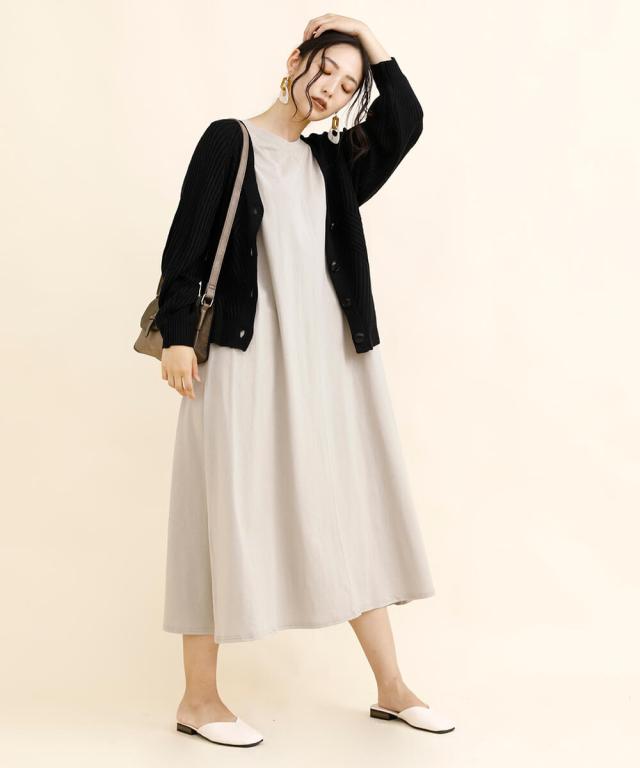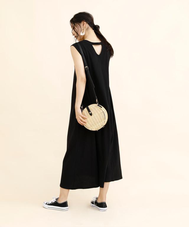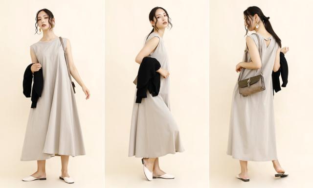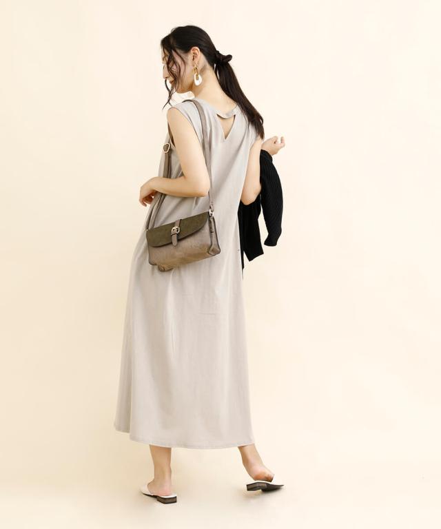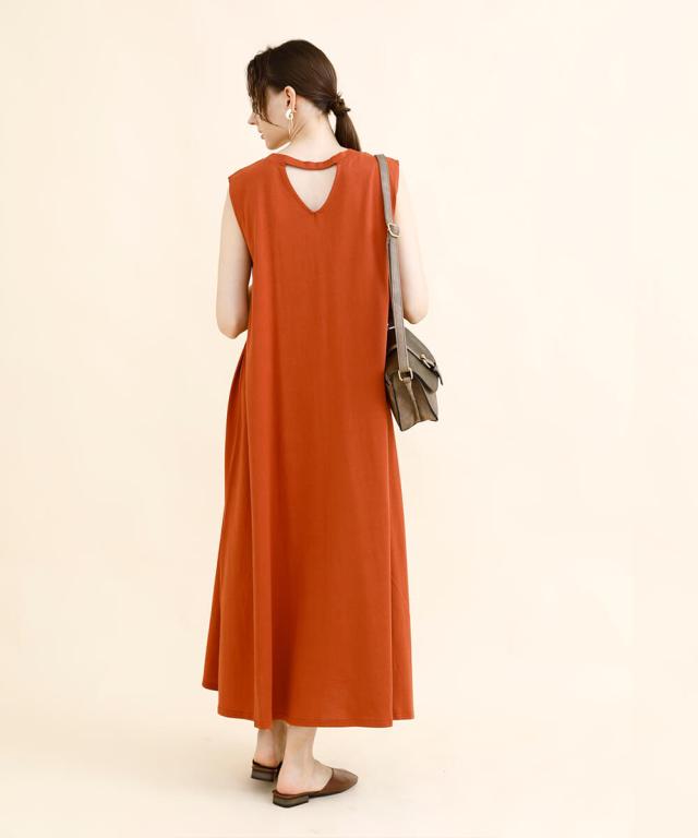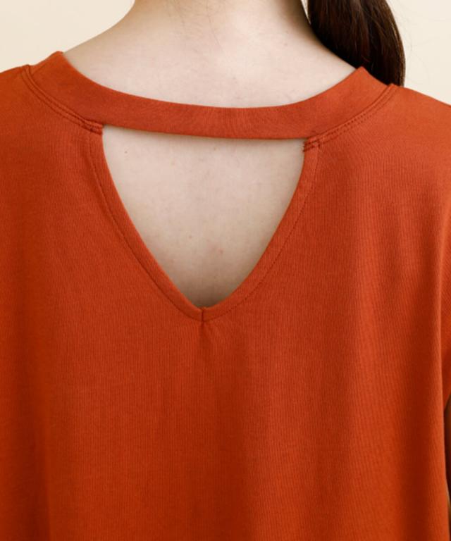 バックスタイルにはちょこんと肌魅せデザイン。全体的にすとんとフレアになっているので、緩く滑らかなイメージに。