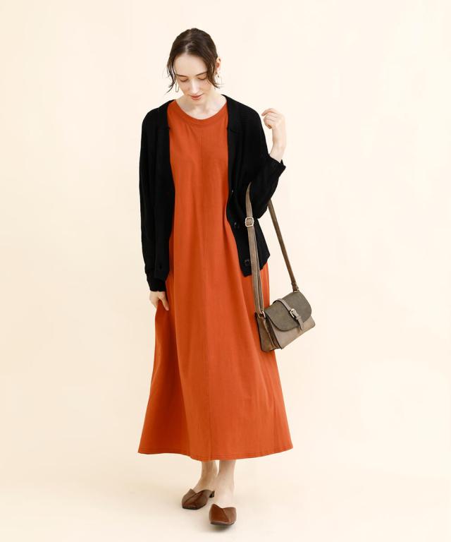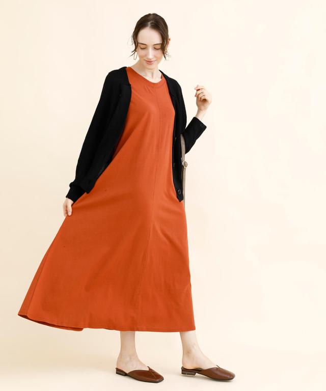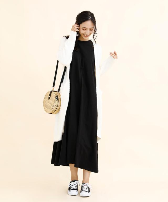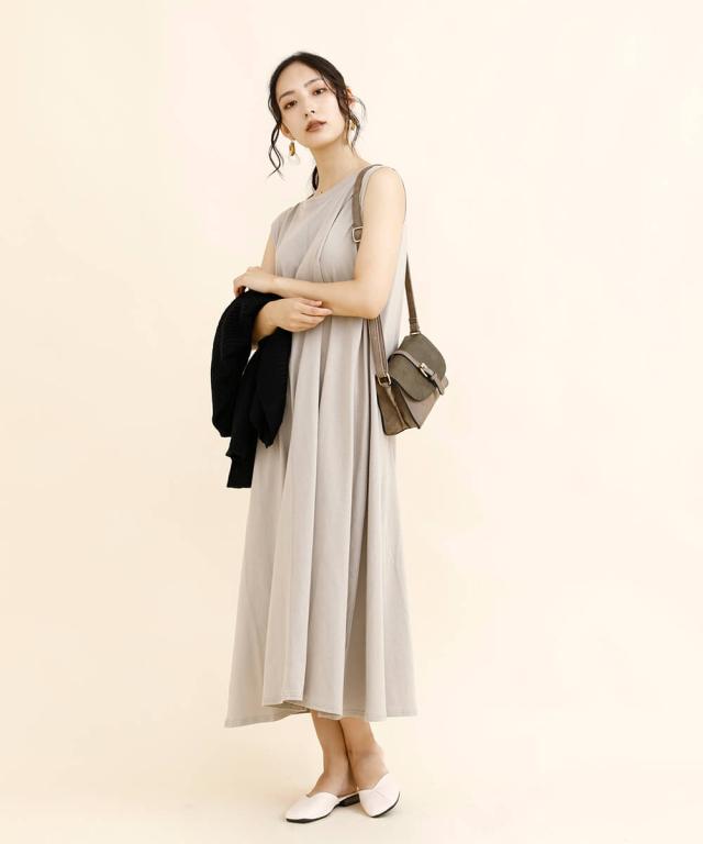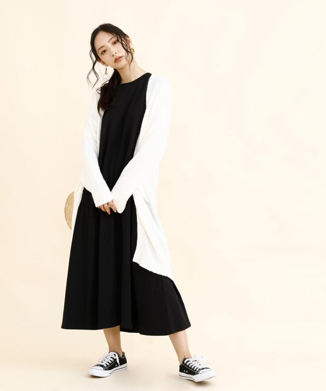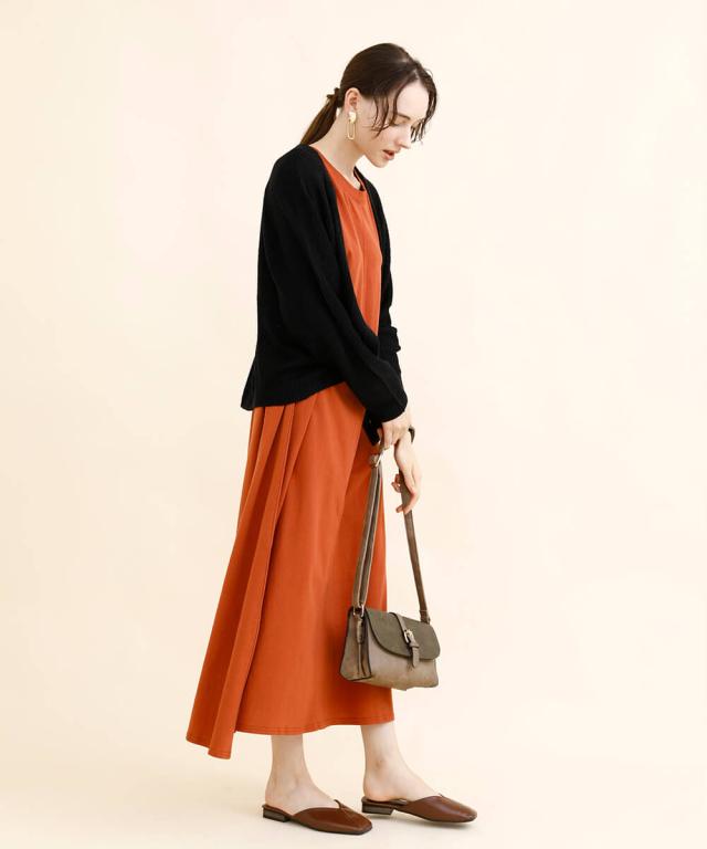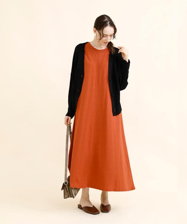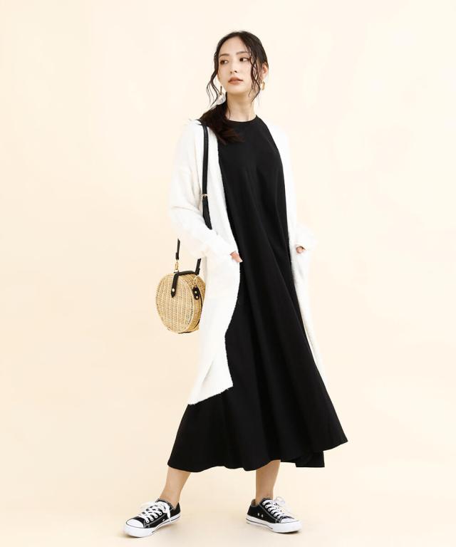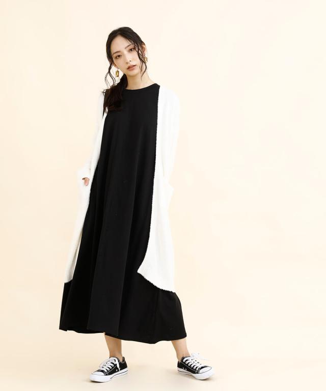 バックスタイルにはちょこんと肌魅せデザイン。全体的にすとんとフレアになっているので、緩く滑らかなイメージに。