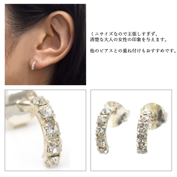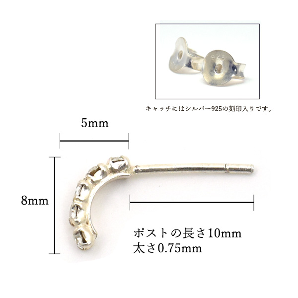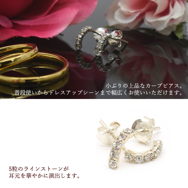 カーブピアス ラインストーン5粒 シルバー925 両耳用 ピアス silver925 アレルギーフリー 華やか上品 お洒落 レディース アクセサリー おしゃれ オシャレ キラキラ 普段使い