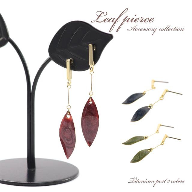 ピアス レディース チタン リーフ 葉っぱ アクセサリー ゆれる ゴールド 大人っぽい レッド ネイビー モスグリーン 植物 可愛い 揺れる ナチュラル チタンピアス プレゼント 母の日 ギフト 2026 記念日 誕生日 贈り物 女性 彼女 妻