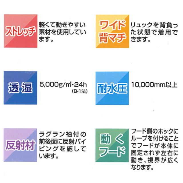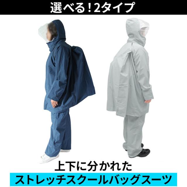 | 商品説明 | ・自転車通学や通勤に最適!雨や風を防ぎ、ムレにくい透湿素材を使用した理想のレインウェア。 ・レインコートとパンツ、上下に分かれたストレッチスクールバッグスーツ(FIC-ST8)と、さっと着られるストレッチスクールバッグコート(FIC-ST6)の2タイプが選べる! ・軽さと動きやすさを実現した、ストレッチ素材を採用。耐水圧10,000mm以上、透湿度5,000/平方m・24h以上。(B-1法) ・前面と背面、それぞれに反射パイピングを施しているため、暗がりですれ違う車からの視認性が高まり、帰宅時間帯も安心。 ・リュックを背負ったままでも着用できる、ワイド背マチ構造。背マチ部分が広くとってあり、胸部の圧迫感を軽減。 ・クリアーシールド素材の大型フードで前が見やすくヘルメットの上からでも被れる。 |