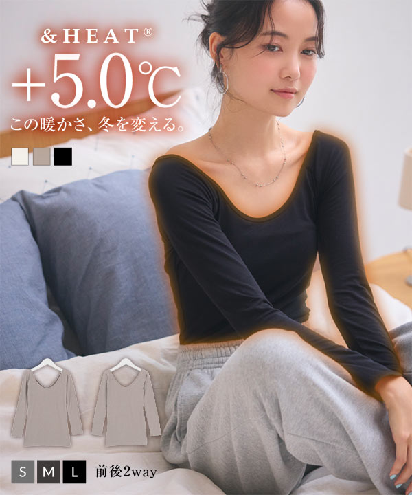 [ &HEAT ] S M L 前後2way あったかインナートップス H558 入荷済 レディース 抗菌防臭 インナー ロンT 防寒 ヒート あたたか 発熱 大きいサイズ インナー あったか コスプレ ギフト