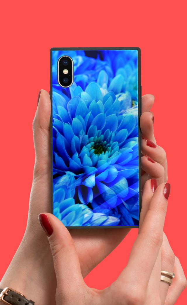 触り心地のよいTPUを使用し、高級感あるブルーガラスに特殊UVプリントし鮮やかな色彩へ。形状にもこだわりを持ちシンプルなスクエア型のスタイリッシュなスマホケースへ仕上がりました。
