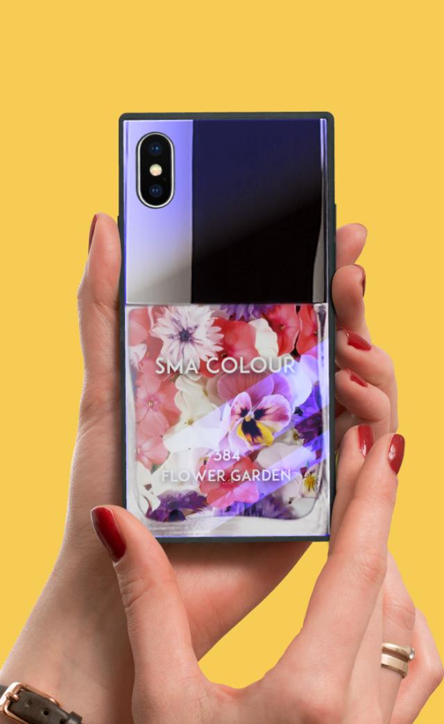 触り心地のよいTPUを使用し、高級感あるブルーガラスに特殊UVプリントし鮮やかな色彩へ。形状にもこだわりを持ちシンプルなスクエア型のスタイリッシュなスマホケースへ仕上がりました。